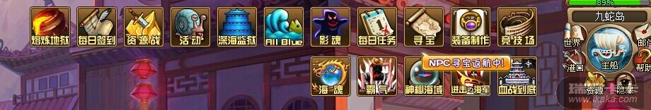 在游戏界面的正上方,每个活动的图标都有,所有活动都从这里进入。