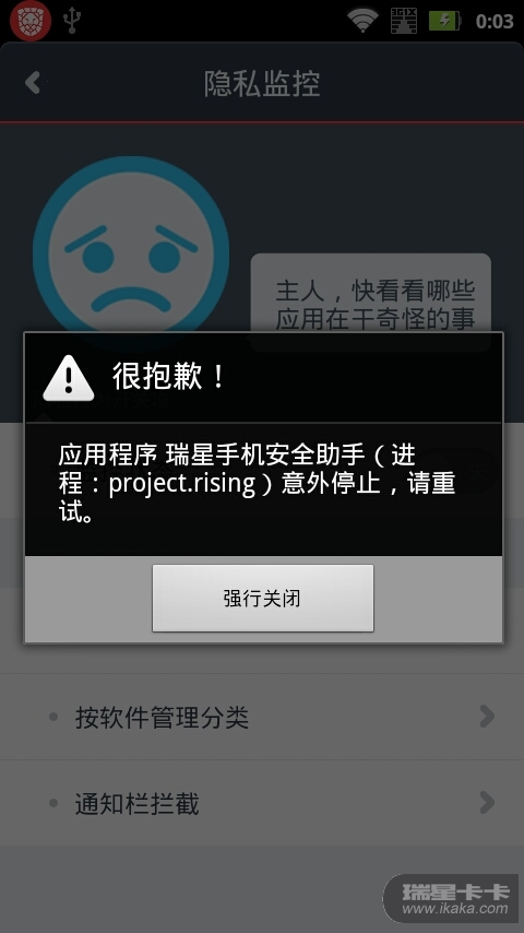 v4.13.08(六月开始使用瑞星手机安全助手后各版本都是以下问题)