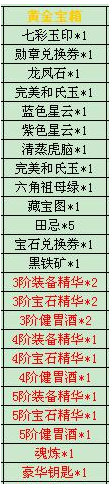 3、增加2阶宝石精华、2阶装备精华、2阶健胃酒、3阶宝石精华、3阶装备精华、3阶健胃酒、特效琥珀、黄金钥匙