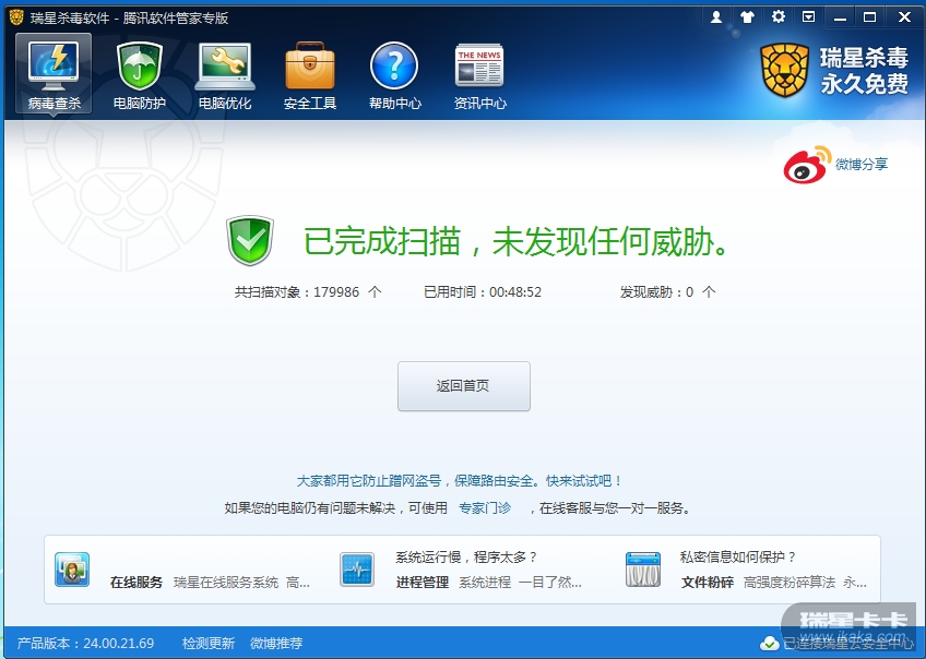 再次建议瑞星能提高杀毒速率!并减少电脑资源占用!