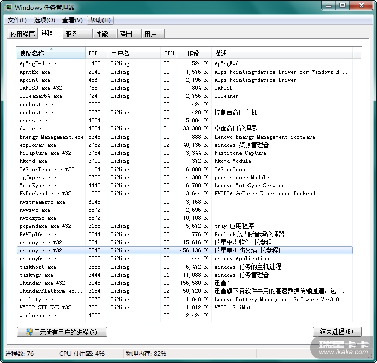 如题,每次电脑开机、重启后或手动重启防火墙软件后的初期,防火墙的托盘程序“rstray.exe”占用的系统内存大约只有几兆至几十兆左右,然后随着时间的推移就开始不停的慢慢的往上增加,上百兆、几百兆……,直至将系统内存全部耗尽,导致电脑的运行速度被严重拖慢,最终系统弹出内存错误提示框,点击确认后防火墙的托盘程序就退出了,同时电脑的速度也恢复正常。