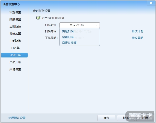 瑞星的计划任务设置中,快速扫描和自定义扫描只能选其一,希望改成可多选。