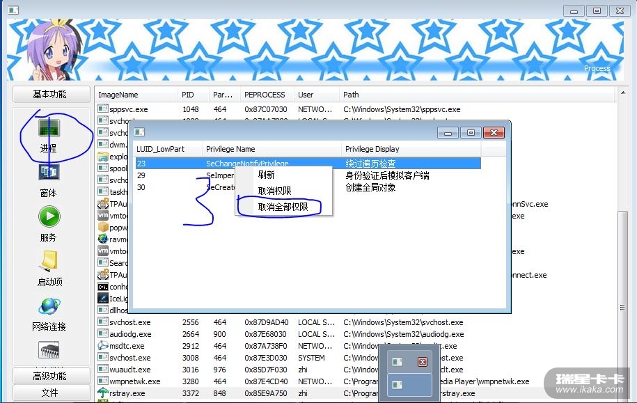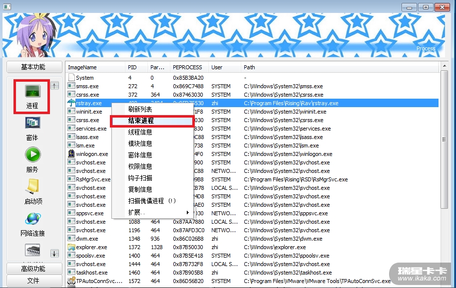 使用此软件能结束瑞星的进程,并没有触发自保提示!!!建议瑞星拦截内核间的函数调用!!!
