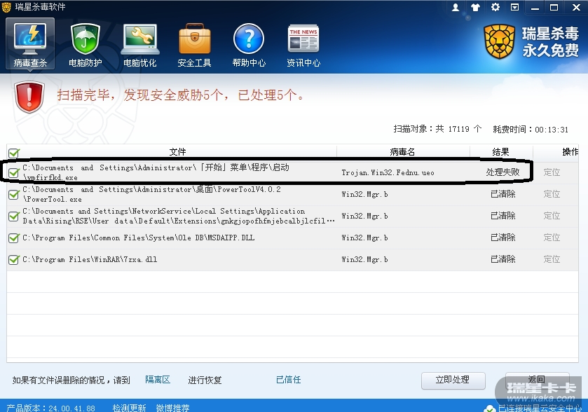 2、处理失败,那个失败的样本提取不出来,并且瑞星定位时报错!!!