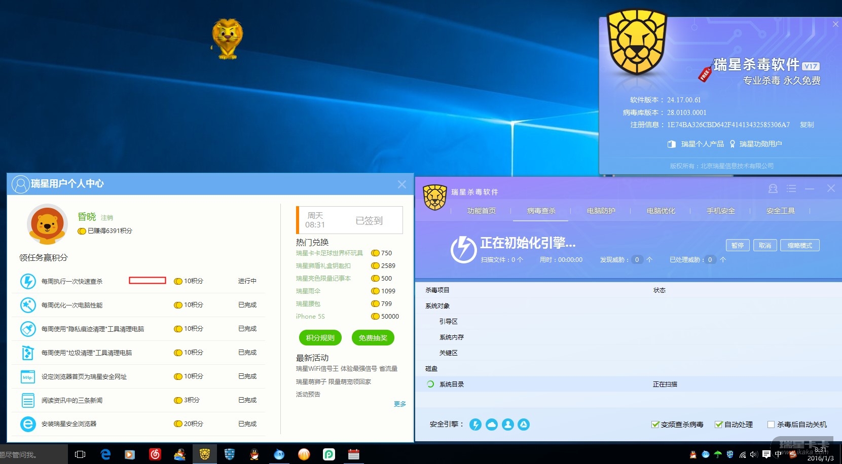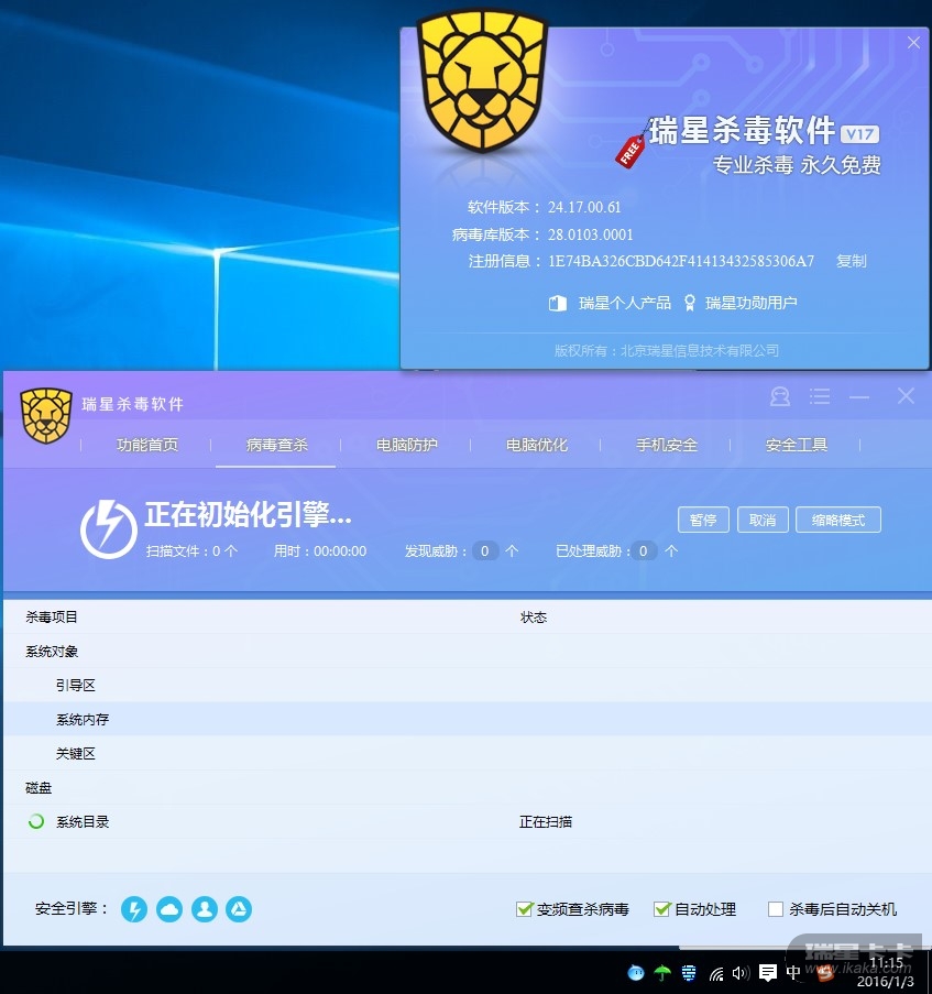 试用V17做任务时,发现杀毒引擎一直初始化中。(如图所示)