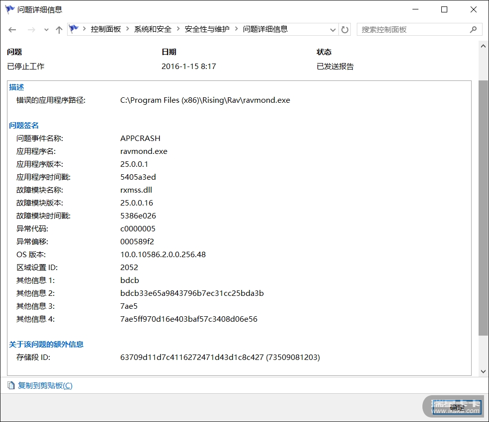 [其他] 请问:瑞星V17+在WIN10中运行为何出现核心程序停止工作?
