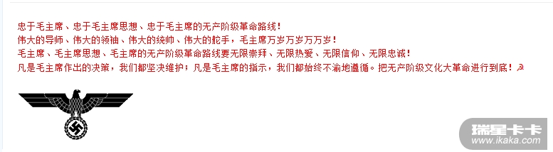 有用户的论坛签名宣扬个人崇拜和纳粹极端思想,上图