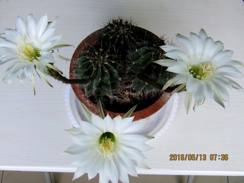 仙 人 球是外形呈球状的仙人掌科植物的统称,有很多品种。原产于南美洲,一般生长在高热、干燥、少雨的沙漠地带。花色有多种,我家养的开白花,只持续几小时到一天哦!