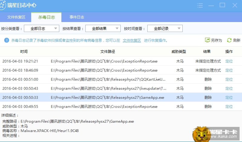 1.为什么用瑞星杀毒,第一次全盘没病毒,第二次全盘发现四个毒,但怀疑是误报,不仅是因为看到文件路径,而且因为清除了病毒我的游戏都无法启动了,结果点击恢复至原始路径游戏才能启动了。恢复以后再次全盘扫描,只报一个毒。。。为什么每次扫描结果不一样啊。。。2.事件日志里面的扫描日志点开详细怎么什么也没有啊?