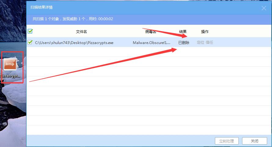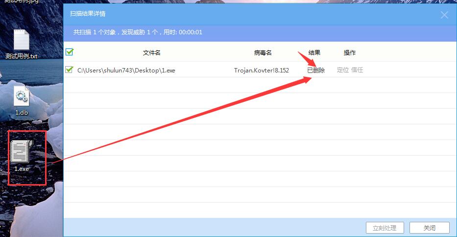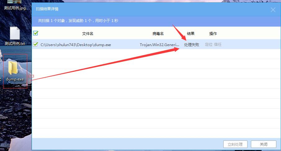 1、文件监控拦截报警后,我点击 清除, 发现 病毒成功运行 ,没有