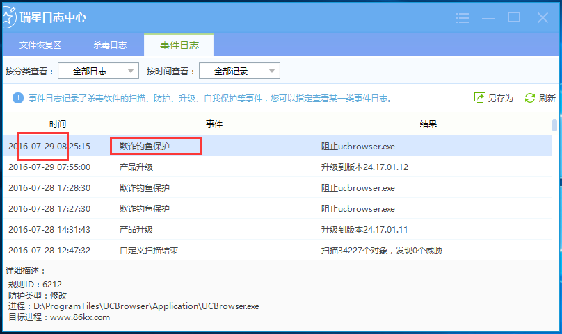 1、7.29日, 瑞星报警 欺诈