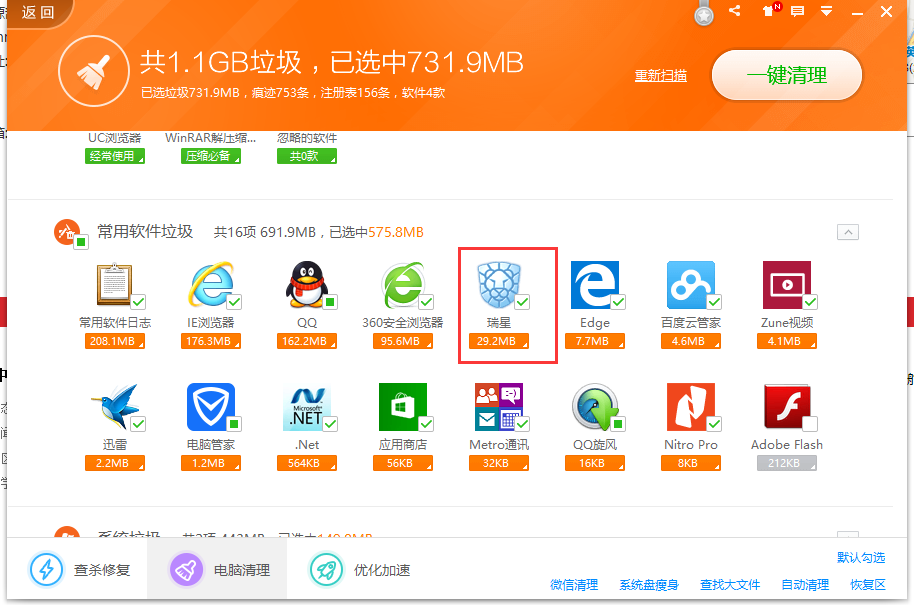 1、瑞星文件, 又被当成 垃圾清理掉了 , 当然 log 也算, 但是 瑞星就那个自保 一点也没有脾气