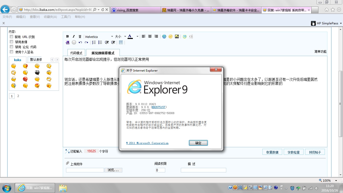 回复:win7家庭版 系统自带ie9与瑞星杀毒软件冲突