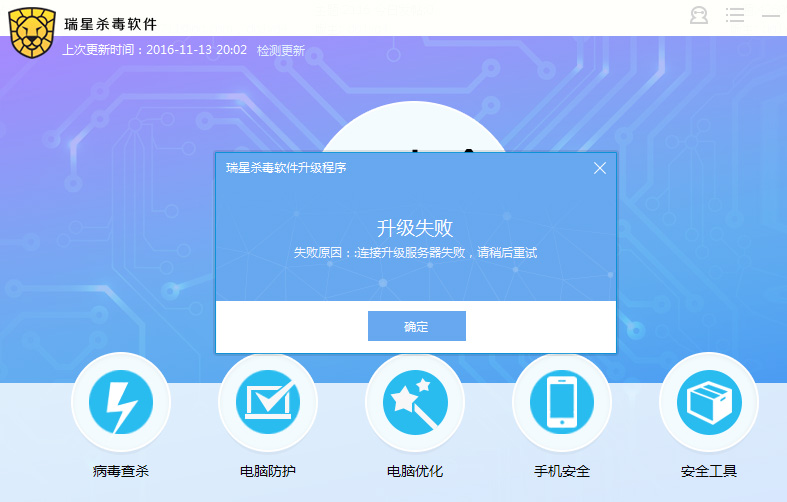 是升级病毒库的时候提示失败的吗?