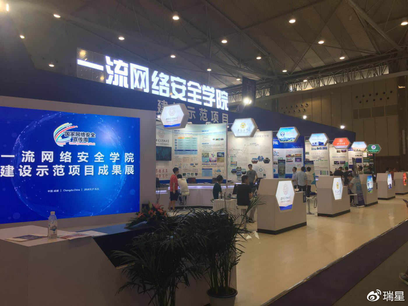 2018年9月17日,由中央网信办、四川省人民政府、成都市人民政府、成都市互联网信息办公室、国家工业信息安全发展研究中心共同举办的“国家网络安全周”在成都开幕,共有90多家企业参展,瑞星作为专业的网络安全厂商受邀出席此次活动,并在此次活动中全面展示了瑞星企业级整体解决方案,瑞星展台位于成都世纪新城国际会展中心一号馆A-42,期待各位莅临!