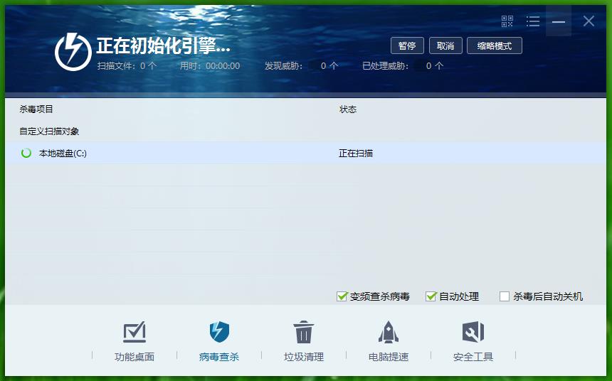 不管使用全盘还是快速或自定义杀毒 都卡正在初始化引擎