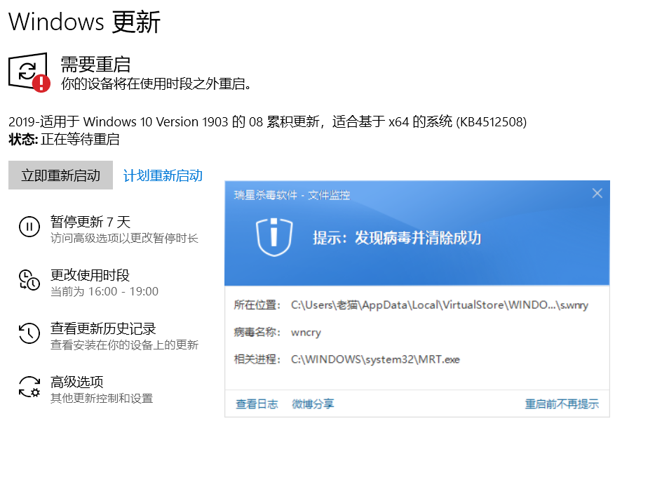 文件监控我选的是询问我,直接就跳出来发现病毒并清除成功是什么鬼?打开隔离区没文件,日志也没记录相关信息