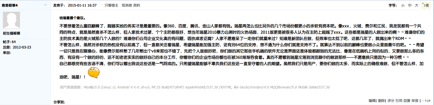 而且你要说主要是发展引擎,然后又不放到客户端上来?不在意这方面的用户当然无所谓,像我们这种一直关注这方面事的用户真的持怀疑态度,怕误报的话企业版不放就算了,个人版为啥也不放?这引擎诞生也有好几年了吧。