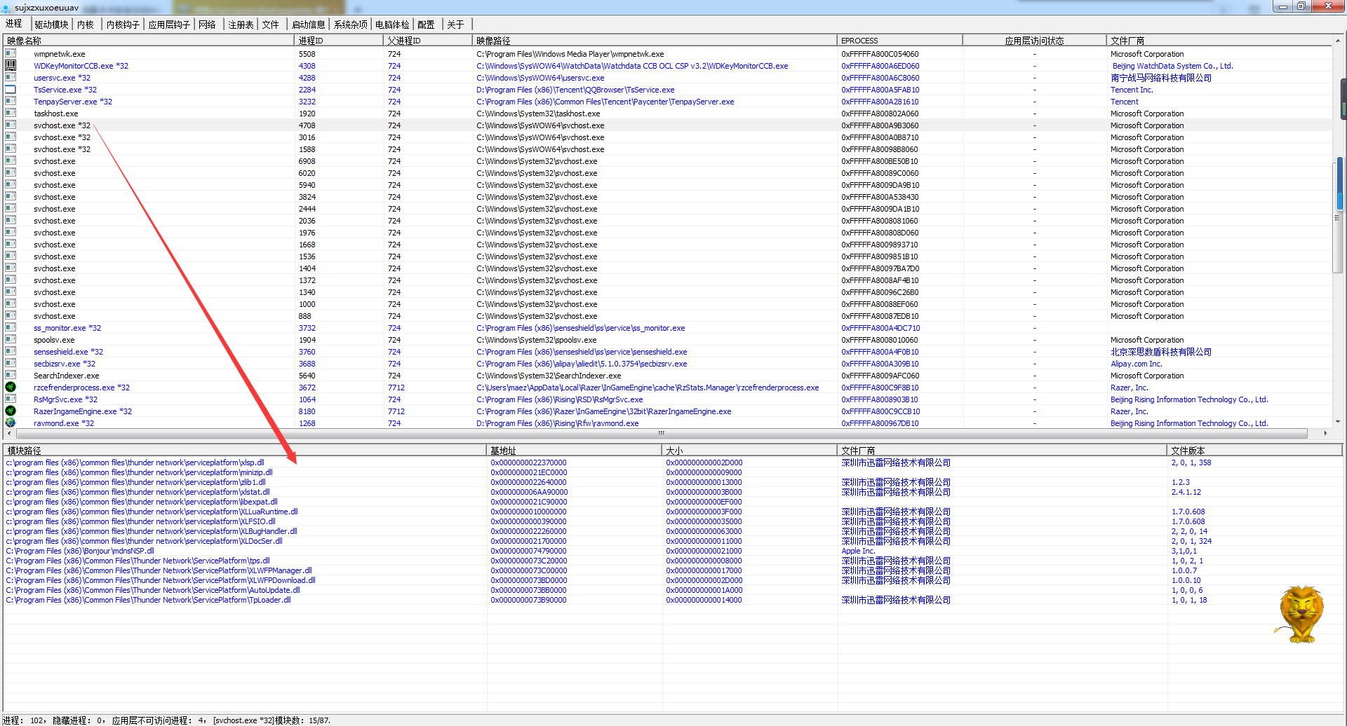 第一个SVCHST.EXE*32是迅雷的,第二个是驱动人生与那个什么战马网络的,第三个是用友税务的,可是不管到底哪个是被木马注入无关紧要了,生新安装了系统。